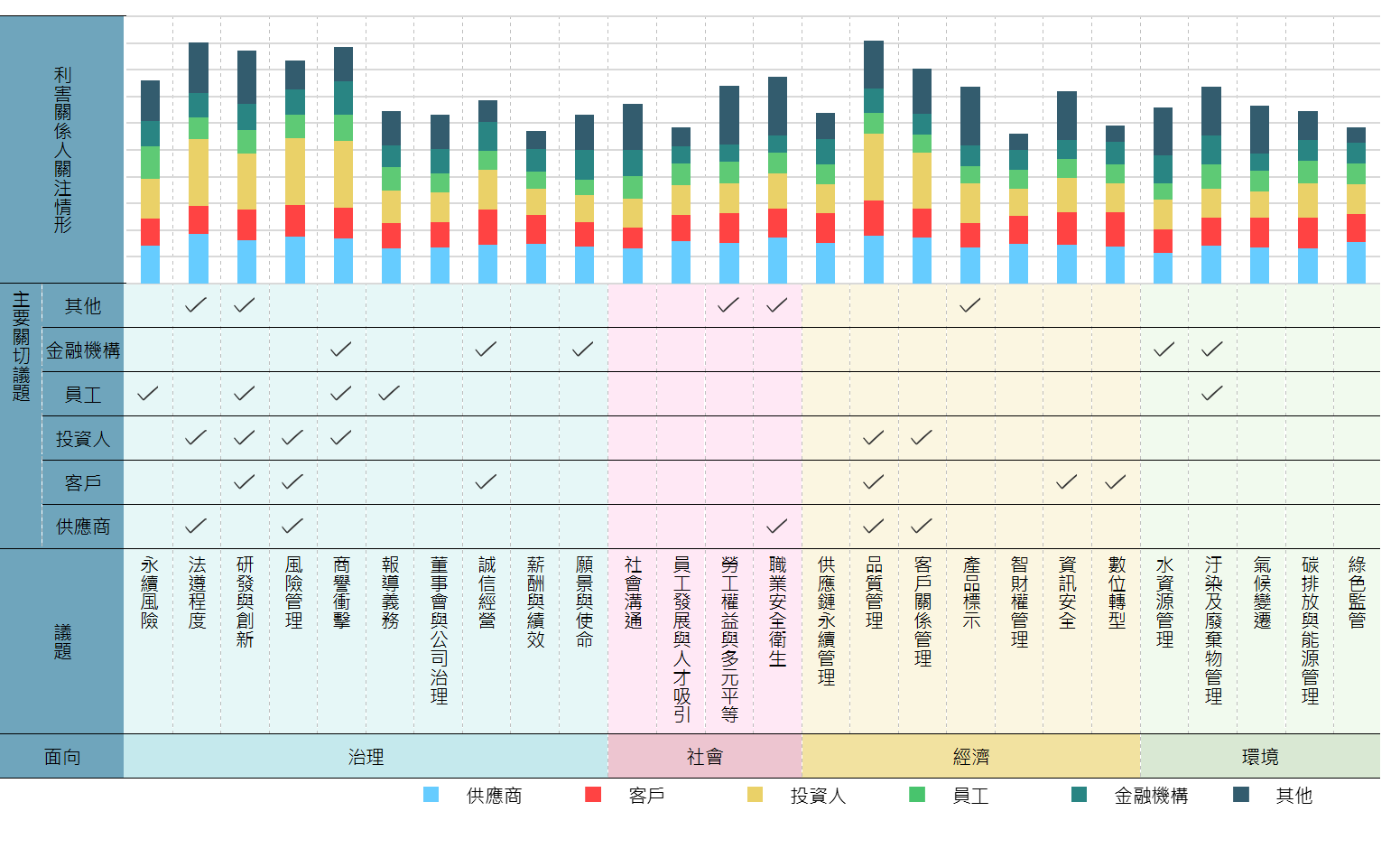 | 利害關係人 | 關切主題 | 回應部門/聯絡窗口 | 溝通管道 | 溝通頻率 | 2025 年溝通情形 |